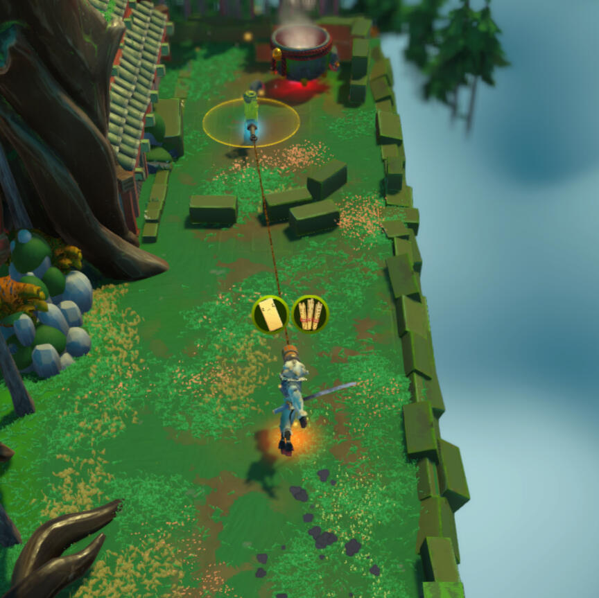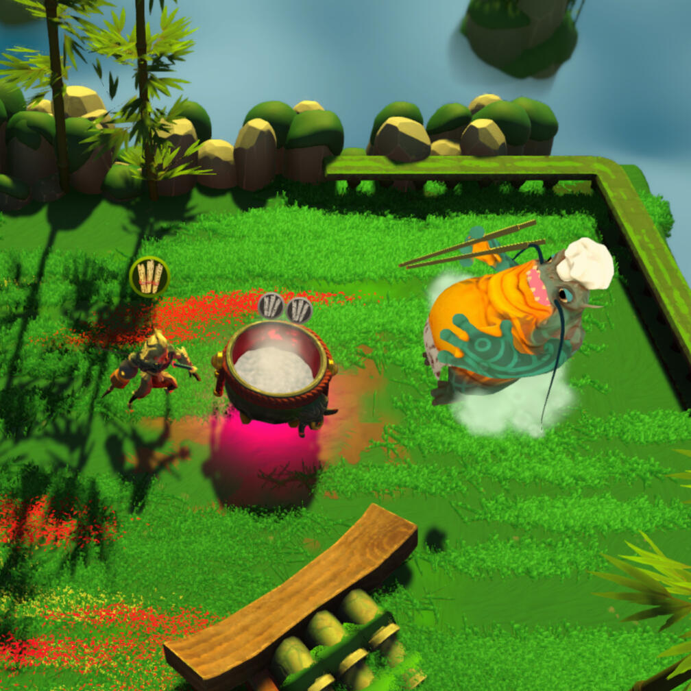 Language: C#Noodle Samurai is a top down action game. You are a monkey samurai who has been captured by a gluttonous demon toad. Using your grapple hook you traverse arenas slaying dangerous ingredients with your trusty blade, cooking and serving them to the demon, lest you become the meal yourself.I'm the sole programmer on this project. I'm working with my Co-Founder Henry Bruce.Noodle Samurai will be at Pax Indie Rising 2022.